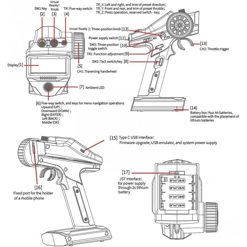 - Powerful Mixed control function: 5 groups of programming Mixed control + 1 group of steering Mixed control, track professional Mixed control (dual engine Mixed control) and 4WS crawler special Mixed control.