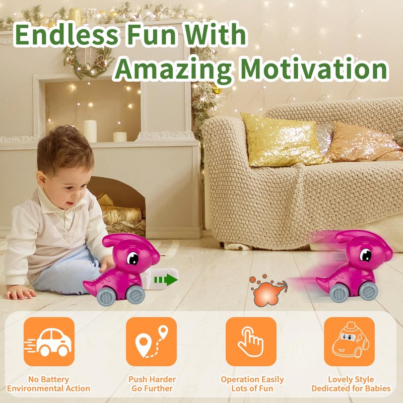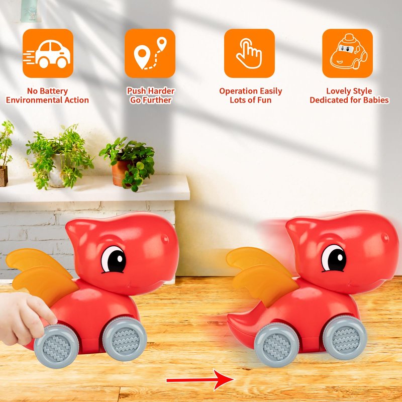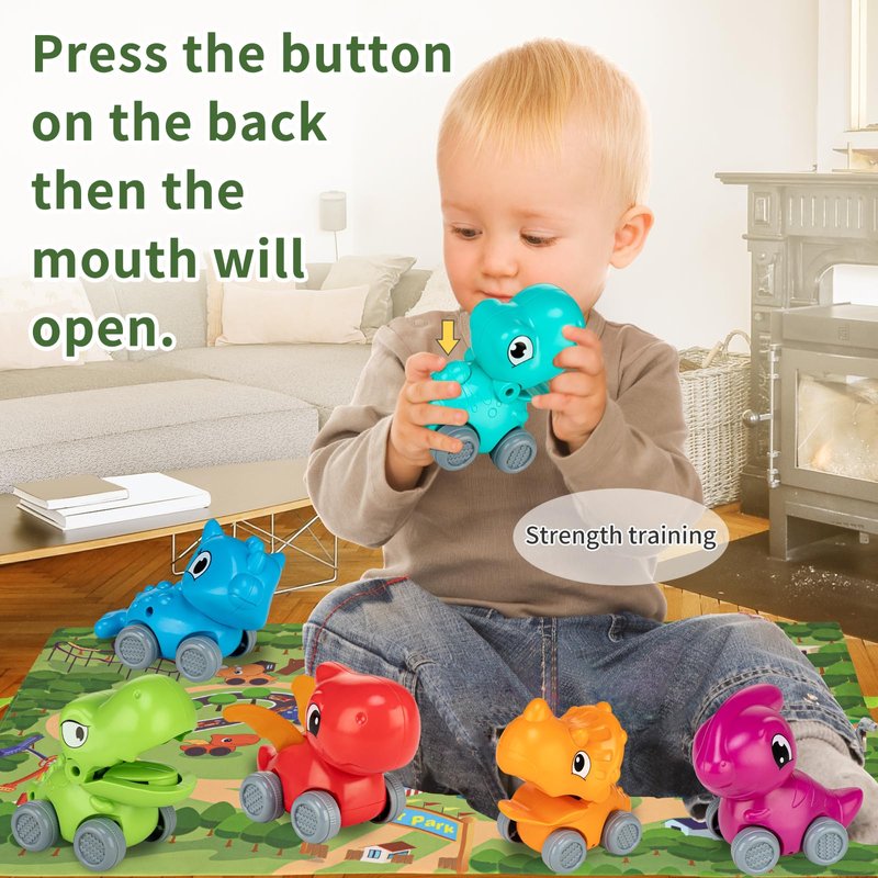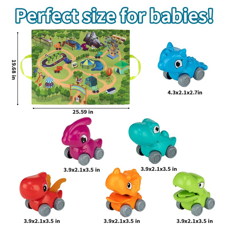 This is a 6 pcs dinosaur car toys set that can be enjoyed by babies & toddlers.All the car toys are in bright colors, round edge design, no sharp parts,no small parts.Babies could push the friction car forward and watch it as they cover long distances - no batteries needed! The car toy sets are well packaged(using open-box design)and good quality,they will be a lovely gift for toddlers who love trucks!