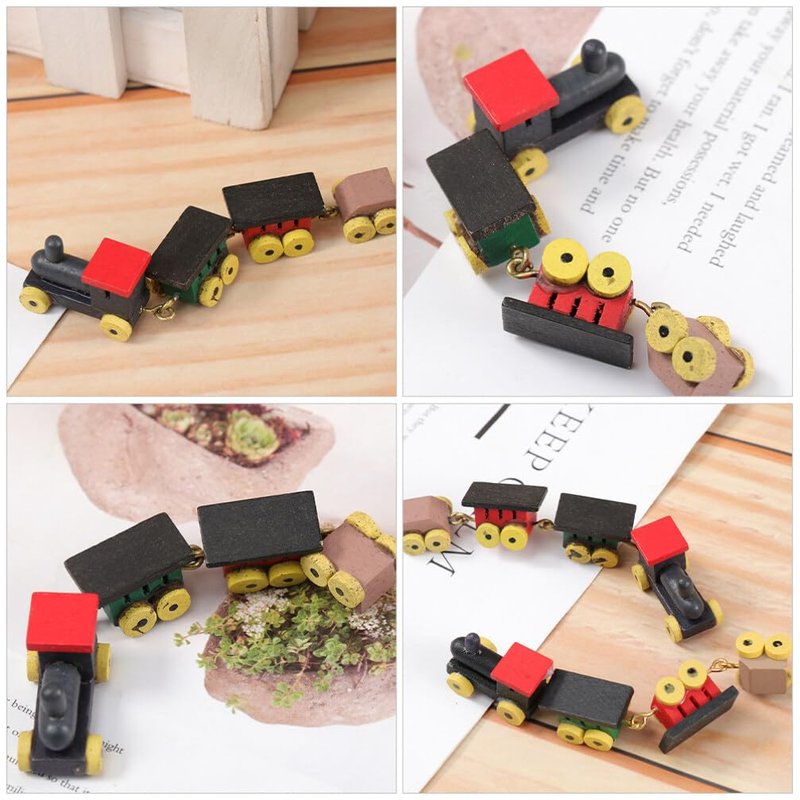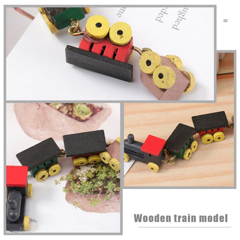 - 🚂🚂🚂---- Mini Wooden Train Set Christmas Miniature Retro Steam Train Simulation Steam Train Model Sculpture for Xmas Table Adornment; The simulation design is lively and interesting, making your doll house more refined.