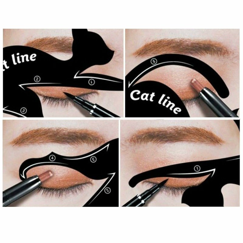 Includes 4 cat shaped eyeliner stencils, 2 of each type.