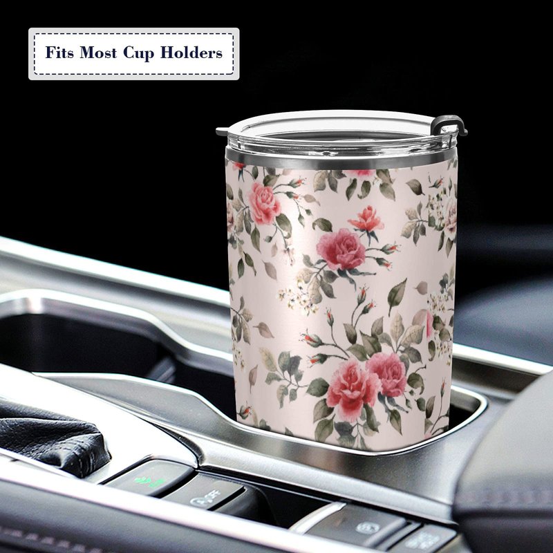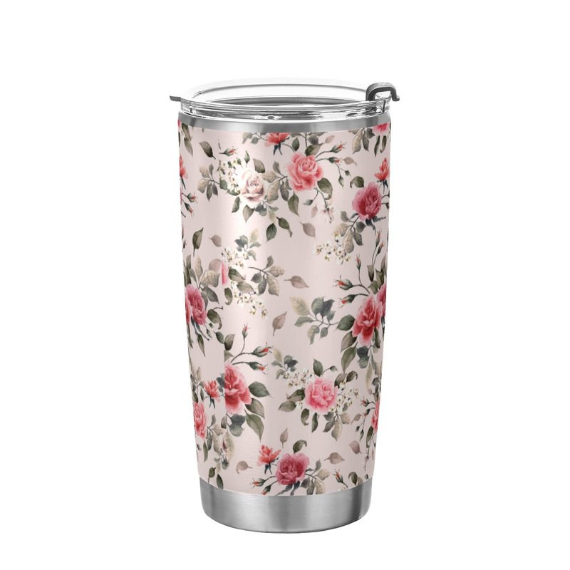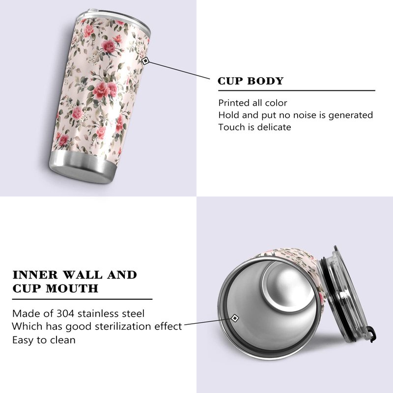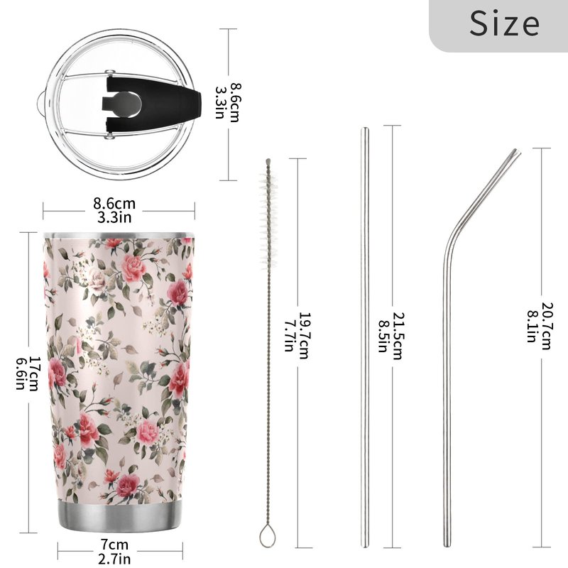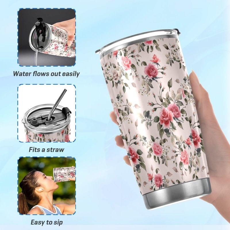 ALAZA Floral Roses Red Pink Tumbler with Lids and Straws,Reusable Stainless Steel Vacuum Insulated Tumbler Cup,Iced Coffee Travel Mug Water Bottle 20oz(590ml)