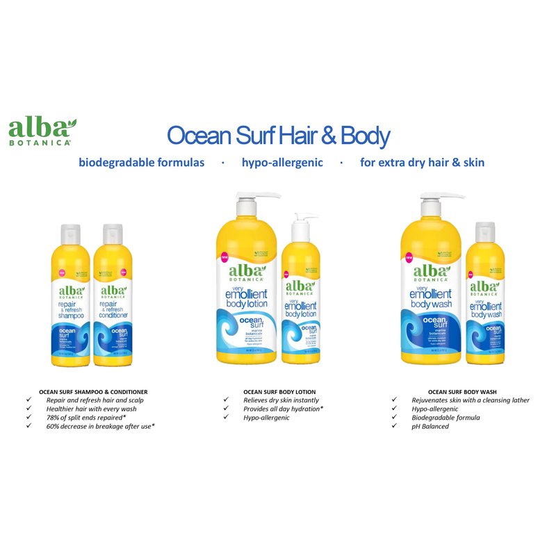 - One 12 oz. bottle of Alba Botanica Very Emollient Ocean Surf Body Wash