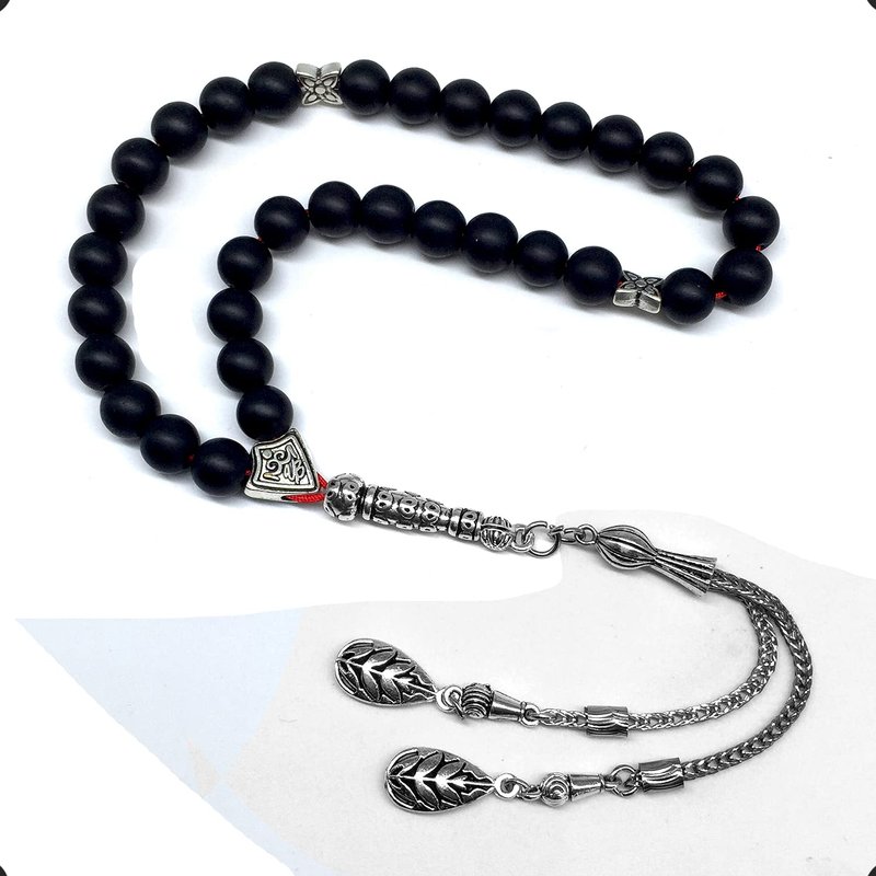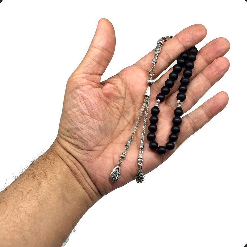 ALBATROSART -Gentle Men Collection- Prayer Beads-Worry Beads-Tesbih-Tasbih-Tasbeeh-Misbaha-Masbaha-Subha-Sebha-Rosary (Synthetic Black Onyx Stone -8 mm 33 beads-)