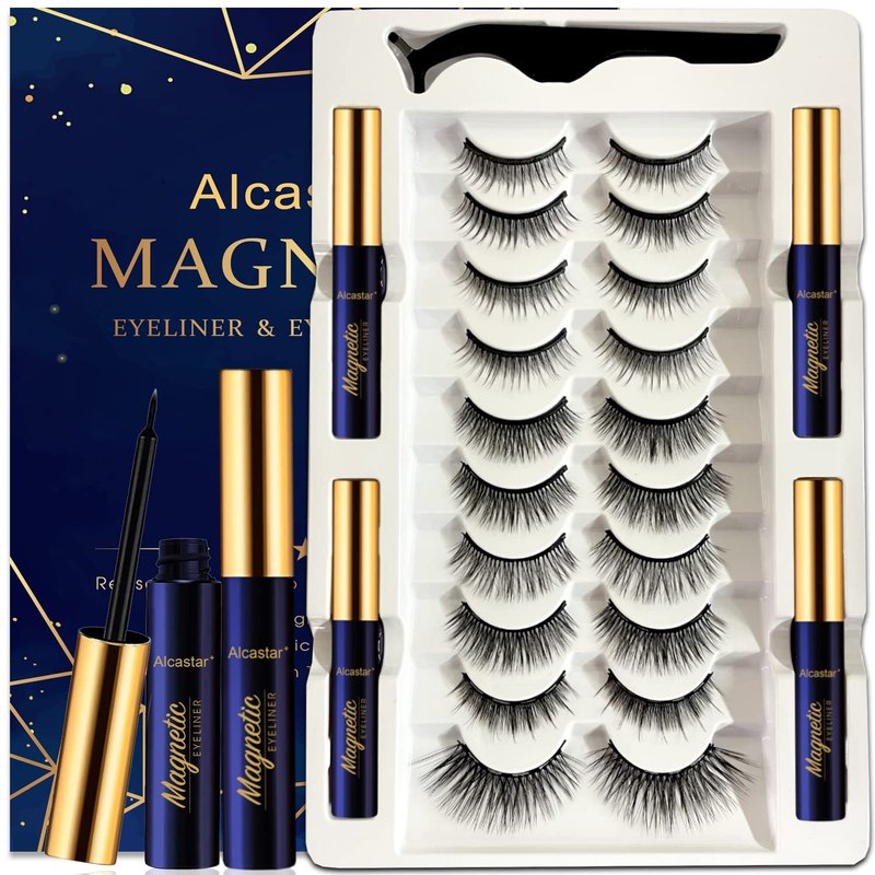 Alcastar Magnetic Eyelashes and Eyeliner Kit, Eyelashes Magnetic Lashes Natural,Magnetic Eyelashes with Applicator, Magnetic Eyelashes Natural Look,LongLasting, Waterproof,Reusable,