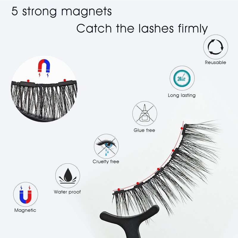 The kit of magnetic eyelashes and eyeliner makes it easier to get a perfect eye make up. You will save a lot of time. The eyelashes are reusable. Put them back to the box after taking them off. You just need to apply the eyeliner and you can put the lashes on again.