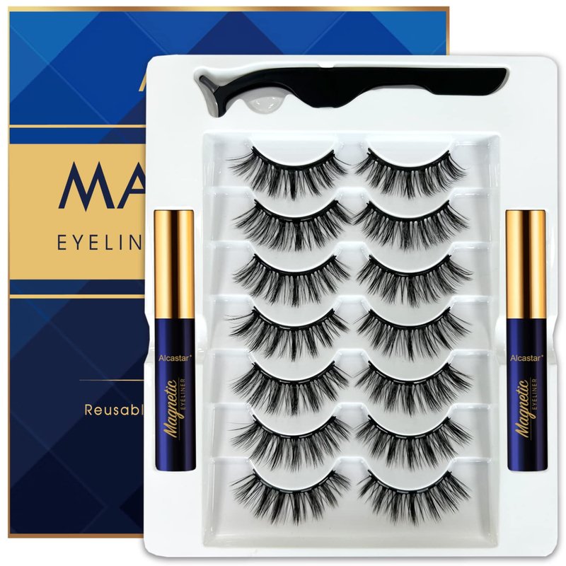 - 【More Choices】7 Pairs of High-Class Faux Mink Lashes (Eyelash lovers repeatedly buy the most styles - Cat-Eye lashes.The most popular length: 7-13MM.) and 2 tube of Magnetic Liner. Keep your lashes Clean well and in the box, thay can Reusable up to 60 times - 1 Pair.