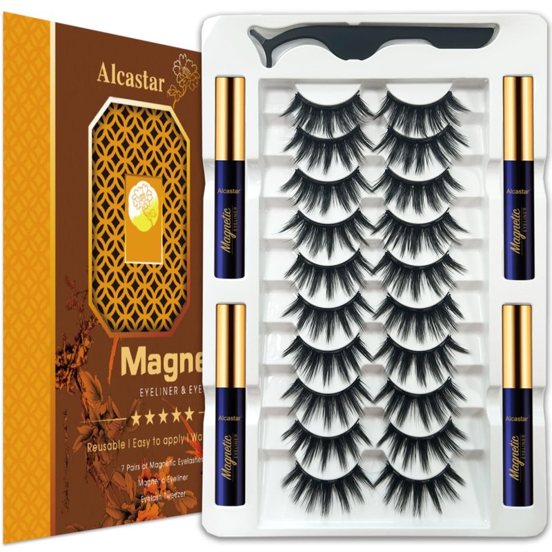Alcastar Magnetic Eyelashes Natural Look, Magnetic Lashes with Eyeliner,Natural Look,Reusable Magnet False Eyelashes Cruelty Free. Easy to Apply.