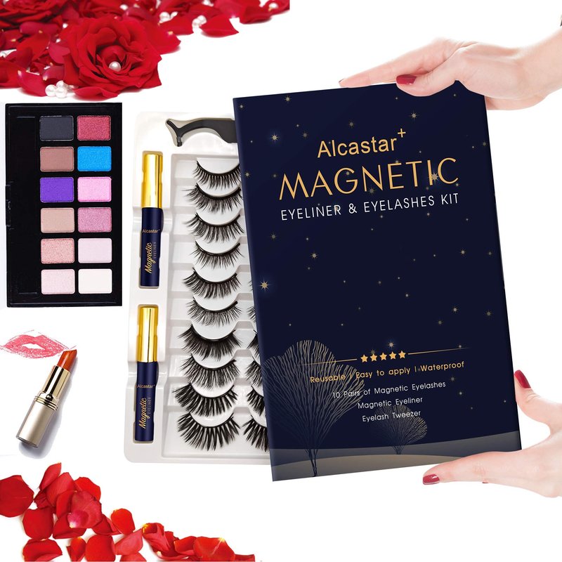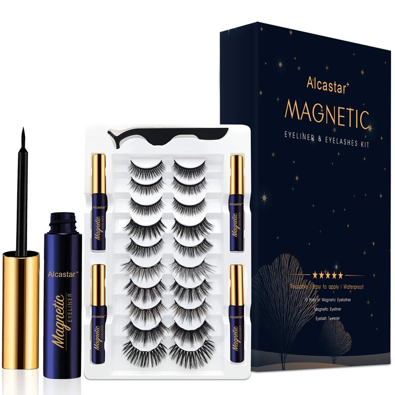 Alcastar Magnetic Eyelashes,Magnetic Eyelashes Natural Look,Magnetic Eyeliner Eyelash Kit,Magnetic Lashes Mink,Waterproof, Long Lasting, Magnetic,Easy to Apply, (Kit-A4: 10 paris+4 tubes)
