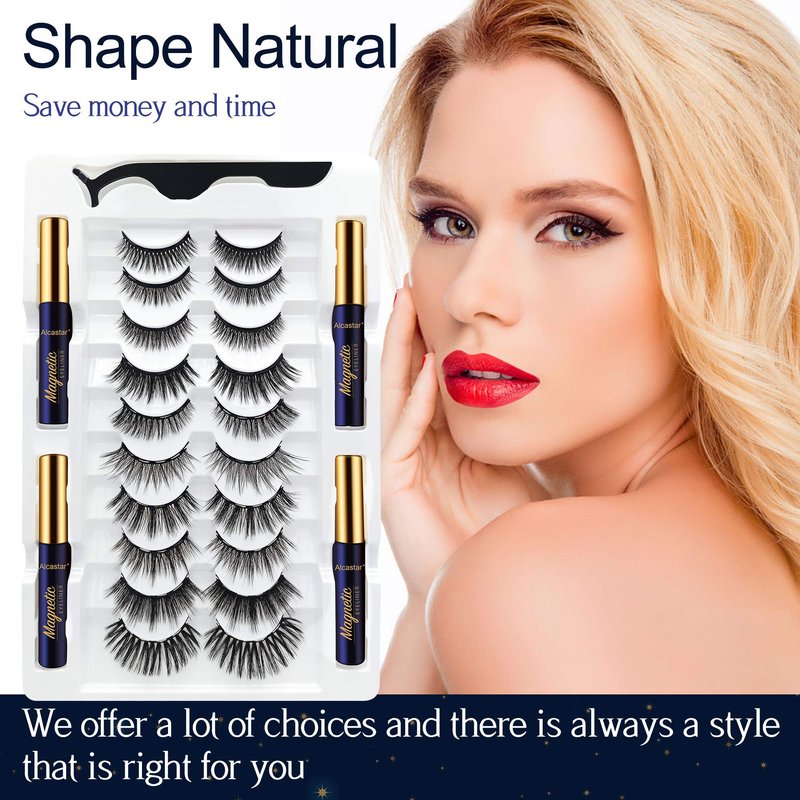 - 10 pairs of magnetic eyelashes, different styles and lengths. Made of high bionic man-made fiber, which is soft, light, comfortable, natural looking and beautiful.