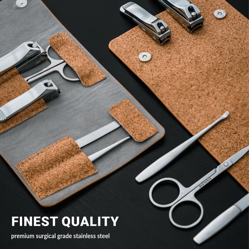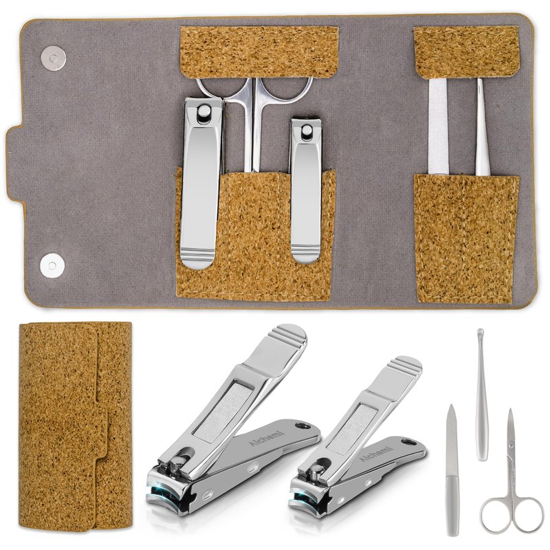 - What's in the Box: The Alchemi set includes 1 fingernail clipper, 1 toenail clipper, and 1 beautiful box. The Alchemi Plus set includes 1 fingernail clipper, 1 toenail clipper, 1 leather case, 1 scissor, 1 nail file, 1 ear pick, and 1 beautiful box.