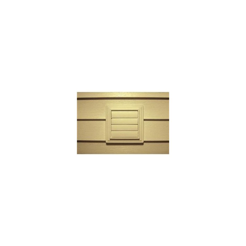 The louvered exhaust vent is used to vent dryers and bathroom exhaust fans. The unique design includes a built in grid to prevent bird intrusion and a 10'' long metal tube that can be used for extra thick walls. Design allows for open or closed flaps. Manufactured with ultraviolet stabilized color, minimizing the effects of exposure to the elements. Compatible with all siding profiles. Rich textured appearance. Surface dimensions: 7'' x 7''. Flange dimensions: 8 1 2'' x 7 1 2''. J Channel internal dimension: 3 4'' adjusts to 1 1 4''. Tube length: 10'' tube. Diameter: 4''.