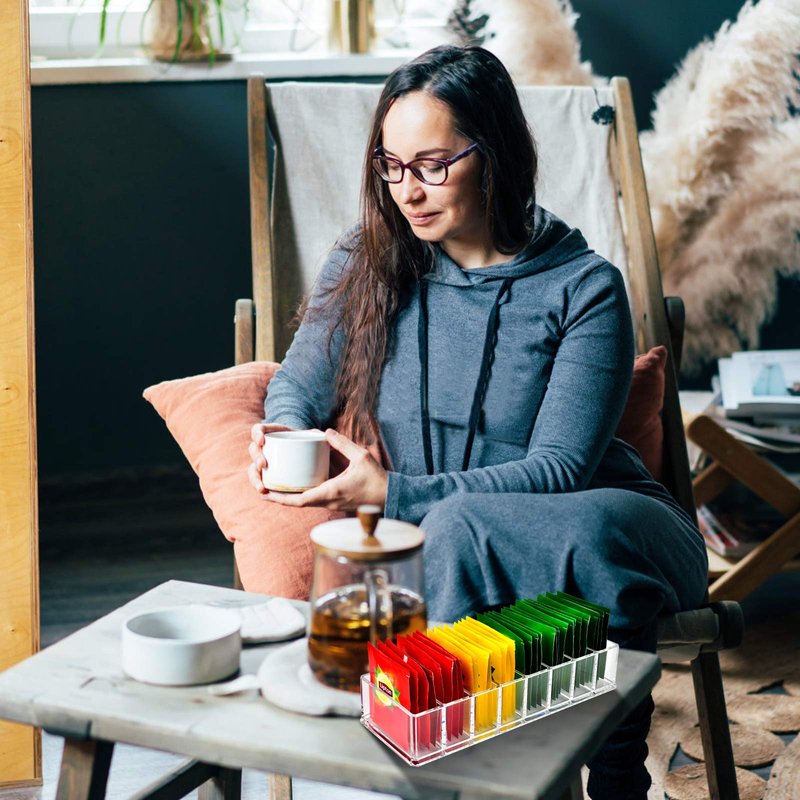 - Note: A separate compartment of tea organizer allows your customers to clearly see the various tea brands placed. It could be making the entire countertop look neat and orderly. Any quality problems, please contact us in time.