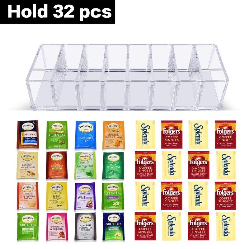 - Perfect display tea bag organizer: Tea organizer can hold tea packets, sugar, pepper packets, sweeteners, coffee packets, beverage bags, liquid vitamins, water flavorings and other small packets. Perfect for kitchen cabinets, countertops.