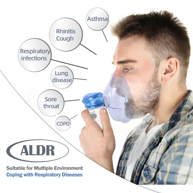 - [Effective Mini Nebulizer ] The unique patented design cup prevents residue build up allowing for better solution delivery, and enjoy the benefits of ALDR nebulizer while sitting or lying down.