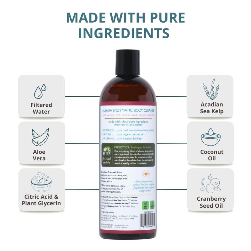 - Cranberry Scented: Aleavia's Cranberry Body Cleanse offers a gentle yet effective cleansing experience, enriched with organic cranberry seed oil to nourish and rejuvenate your skin.