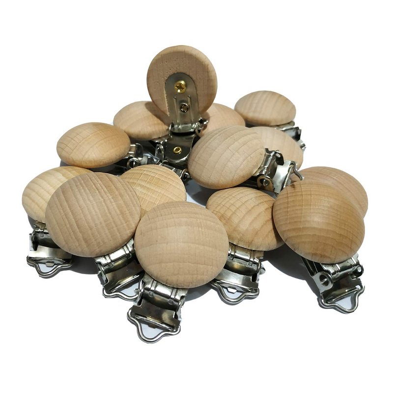 Alenybeby 10pcs Natural Beech Wood Pacifier Clips Teething Grasping Toy Suspender Clips Charm Antique DIY Baby Teether Toys (3.5cm/10pcs)