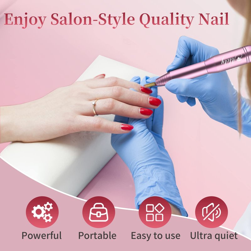 - 【Multifunctional Nail Drill Kit】The nail drill kit comes with nail filer electric, 6 pcs upgraded iridescent nail drill bits, 26 sanding bands, USB cable (not wireless and without adapter) which achieve any manicure you want. Perfect for salon and home carving creativity.