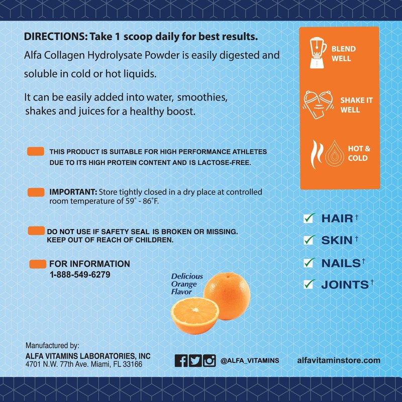 ALFA VITAMINS CollagenC Hydrolysate Peptides Powder Supplement with 1,000mg Vitamin C - Premium Quality Source of Nutrients - Skin, Hair, Nails, Immune Boost & Joints Support - Orange Flavor -11 OZ