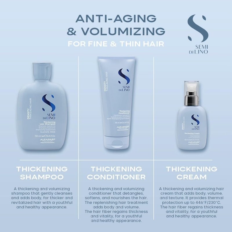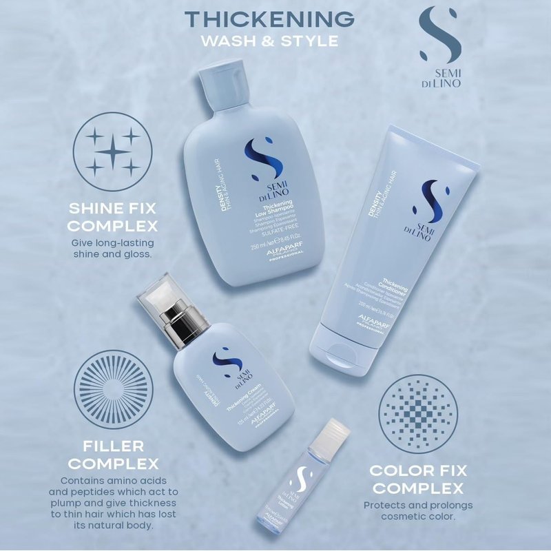 - Replump & Revitalize - Take your thin, aging hair to new heights with our Thickening Low Shampoo. This gentle shampoo is formulated to cleanse and give body for thicker, revitalized hair. Its rich and creamy foam texture won't weigh you down and is suitable for frequent use.