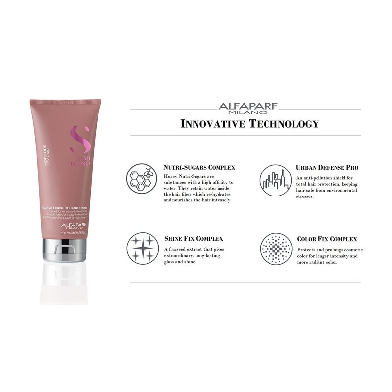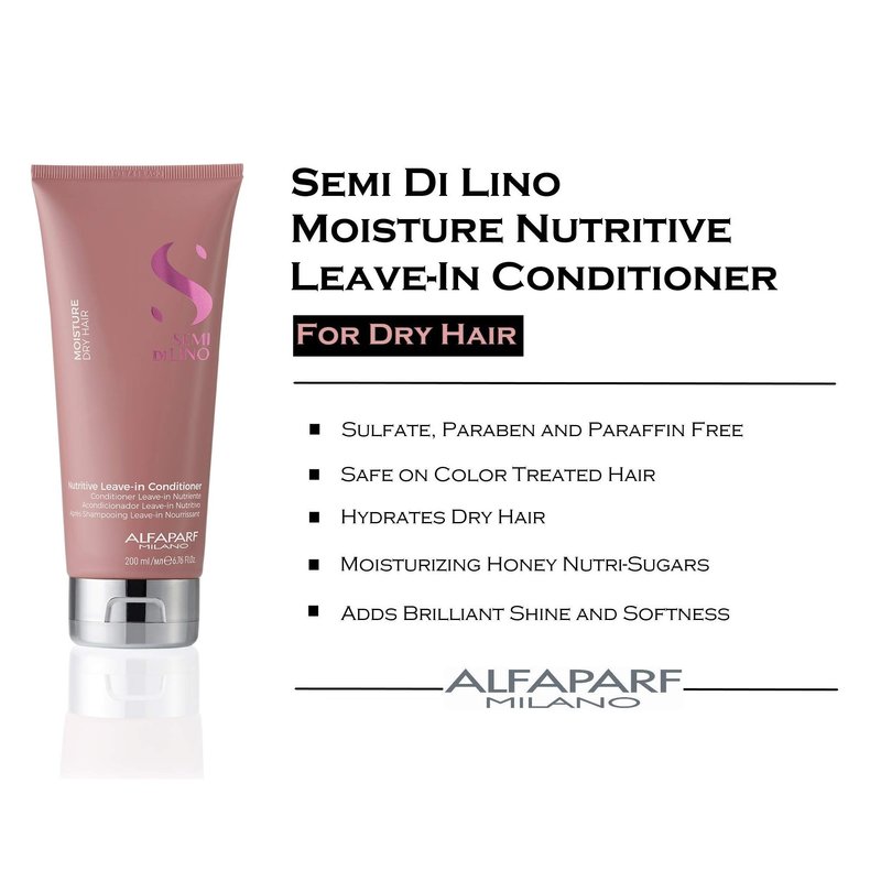 Alfaparf Milano Semi Di Lino Moisture Nutritive Leave-in Sulfate Free Conditioner for Dry Hair - Professional Salon Quality - SLS, Paraben and Paraffin Free - Safe on Color Treated Hair, 6.76 Fl Oz