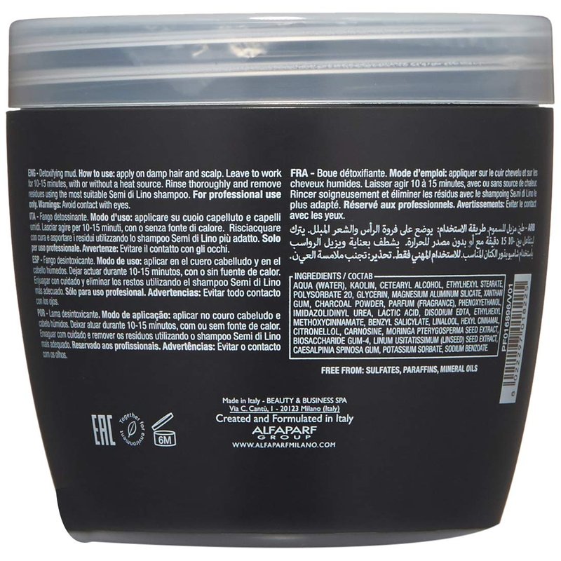 Alfaparf Milano Semi Di Lino Sublime Detoxifying Deep Cleansing Mud Treatment - Safe on Color Treated Hair - Clay-Based Detox for Hair - Professional Salon Quality - 21.1 oz.