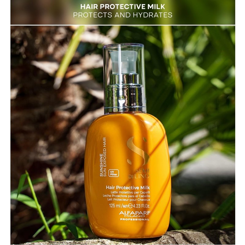 - SEMI DI LINO SUNSHINE: The new line for sun exposed hair, which protects the hair fiber and color from UV rays, counteracting dryness and frizz, for shiny and silky hair, even in the sun. Includes the after-sun shampoo, after-sun treatment, protective hair oil, and protective hair milk.