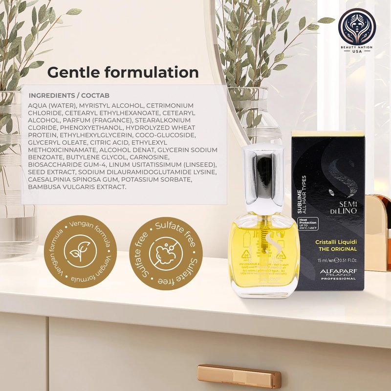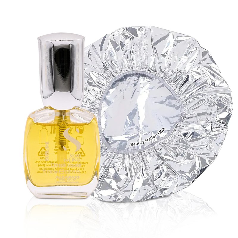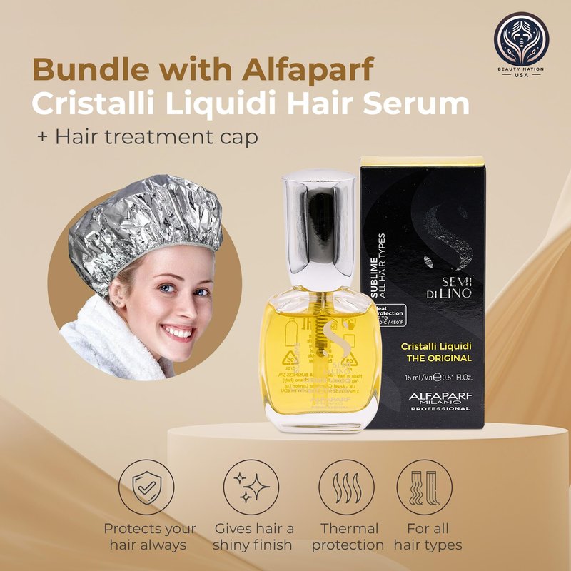 Alfaparf Sublime Cristalli Liquidi Hair oil serum Bundle with Beauty Nation treatment cap, sulfate free and vegan formula, Hair heat protectant 15ML