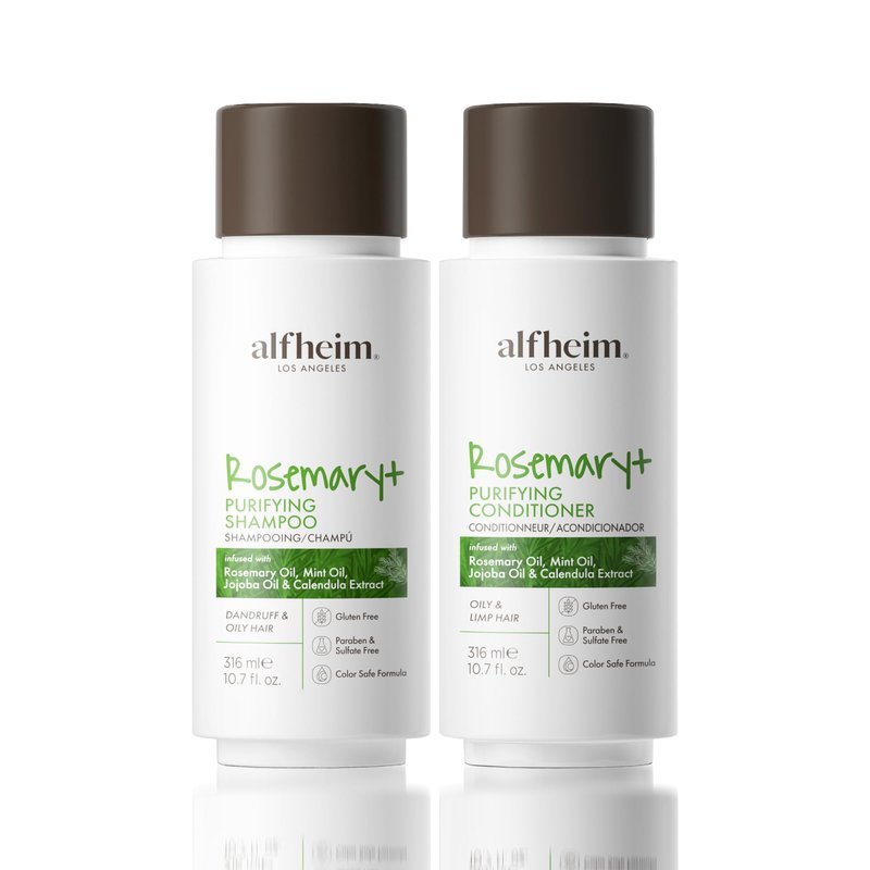 Alfheim Rosemary+ Purifying Shampoo & Conditioner Set | Rosemary & Peppermint Oil for Scalp Refresh & Oil Control | Jojoba & Calendula for Hydration & Shine | Sulfate-Free, Color-Safe | 10.7 oz Each