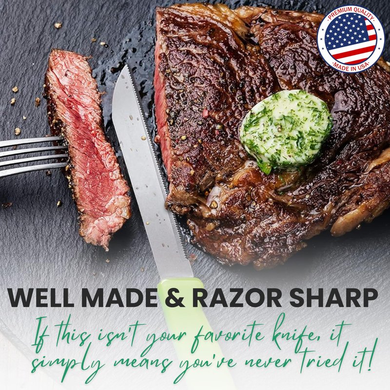 Alfi All-Purpose Knives Aerospace Precision Pointed Tip - Home And Kitchen Supplies - Serrated Steak Knives Set | Made in USA (Multicolor)