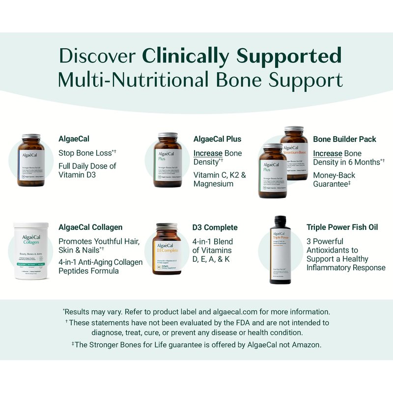 ALGAECAL Collagen: 4 Clinically-Supported Peptides VERISOL®, FORTIGEL®, UC-II®, FORTIBONE®, Anti-Aging Hydrolyzed Collagen Powder, 30 Servings, Made in USA