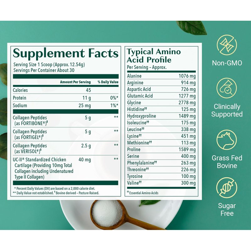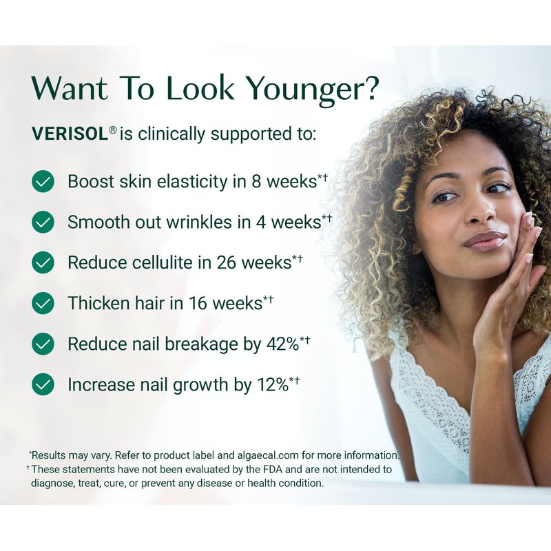 ALGAECAL Collagen - 4 Clinically-Supported Peptides VERISOL®, FORTIGEL®, UC-II®, FORTIBONE®, Anti-Aging Hydrolyzed Collagen Powder, 60 Servings, Made in USA