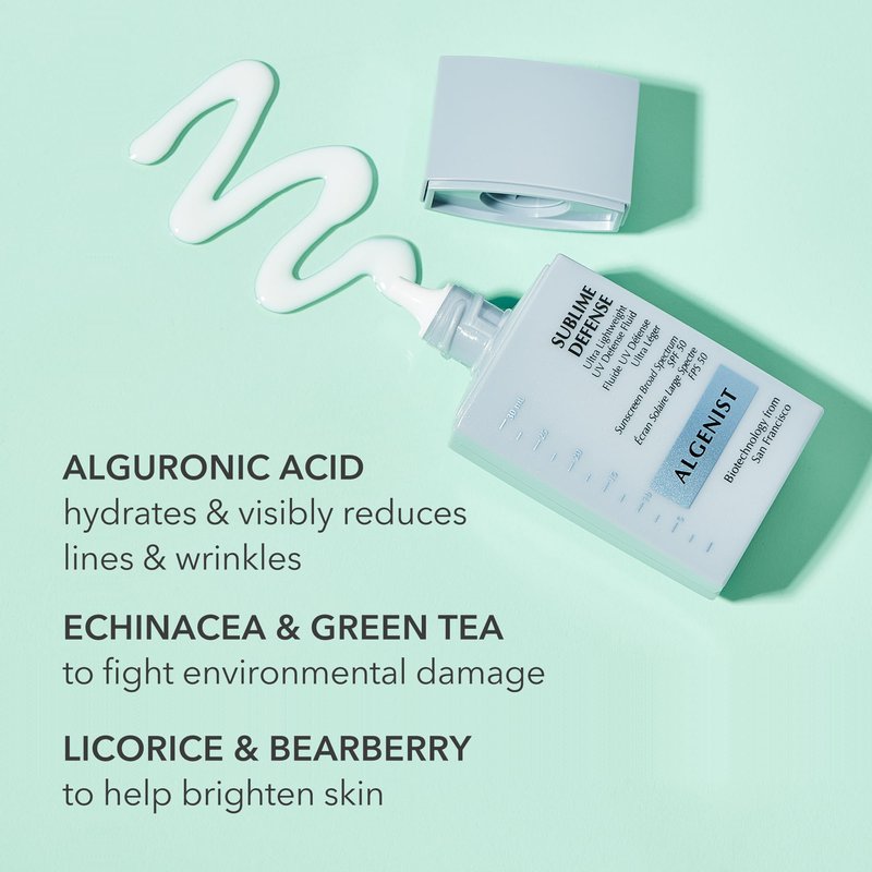 Algenist Sublime Defense Ultra Lightweight UV Defense Fluid SPF50 - Sheer, Oil-Free Face Sunscreen with Vitamin E, Echinacea & Green Tea - Non-Comedogenic & Hypoallergenic Skincare (30ml / 1oz)