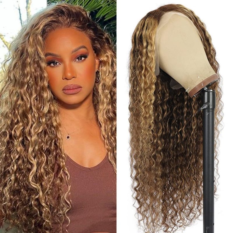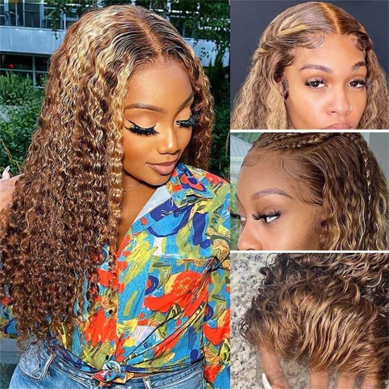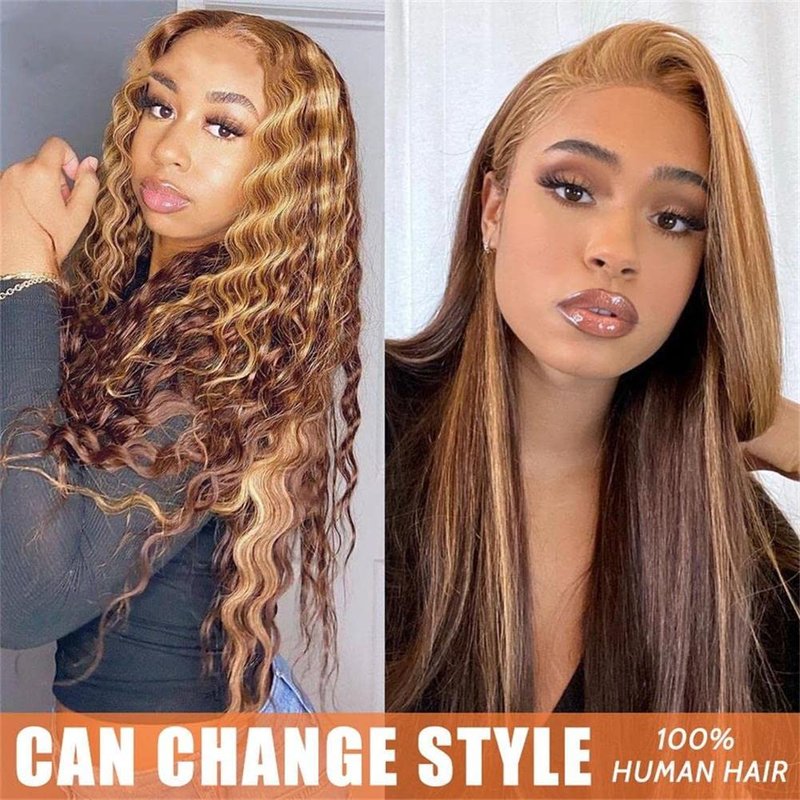 - 【Easy to Install & Beginner-Friendly】This Deep Wave Lace Frontal Wigs for Black Women Human Hair Has Breathable Net, Making You Feel Comfortable When Wearing it. There are Several Adjustment Straps and Clips on Top, Back and Both Sides, Which Can Be Tied Together, and You Can Adjust the Elastic Strap to Make it Fit Your Head Size. This 4/27 Highlight Lace Front Wigs is Easy to Install, Easy to Take Off, Saving Your Time.
