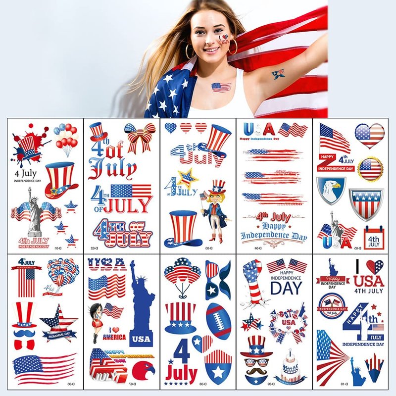 - Reliable Material: 4th of July temporary tattoos are made up of non-toxic and environment-friendly materials, which is 100% safe to skin. These tattoos also has good waterproof performance, which is safe to wear at the beach or in the shower or pool. Notice: avoid sticking to sensitive skin.