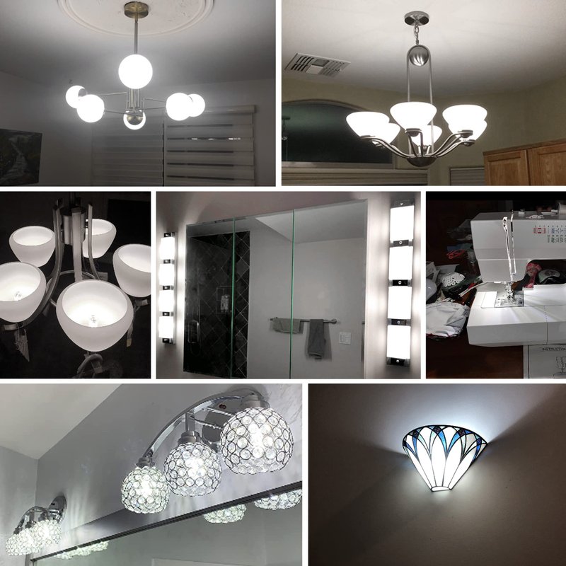 - Widely applications: E12 led bulbs fit for ceiling fan light, chandelier, pendant lights, salt lamp, window lighting, wall sconce, desk lamps, porch lights, accent lighting, art galleries, hallway sconces,turkish lamp, exterior lantern lighting fixtures, perimeter lights and drive lights, persian lamp, dryer, driveway latern, typical night lights, porch lamp, outdoor Christmas display, outdoor sconces, bathroom vanity mirror, LED porch bulbs, overhead light, etc