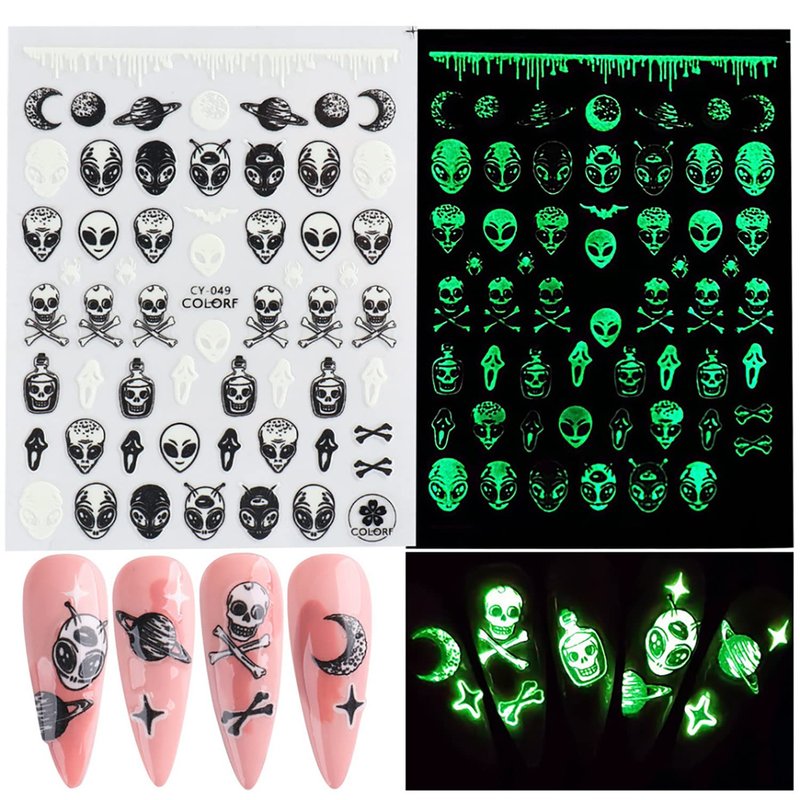 Fashion Alien 3D Self-Adhesive Sticker Set, Luminous Nail Art Stickers Design for Easy and Fast to Use. Daily Use Nail Stickers for Fingernails Toenails Charms Decoration.