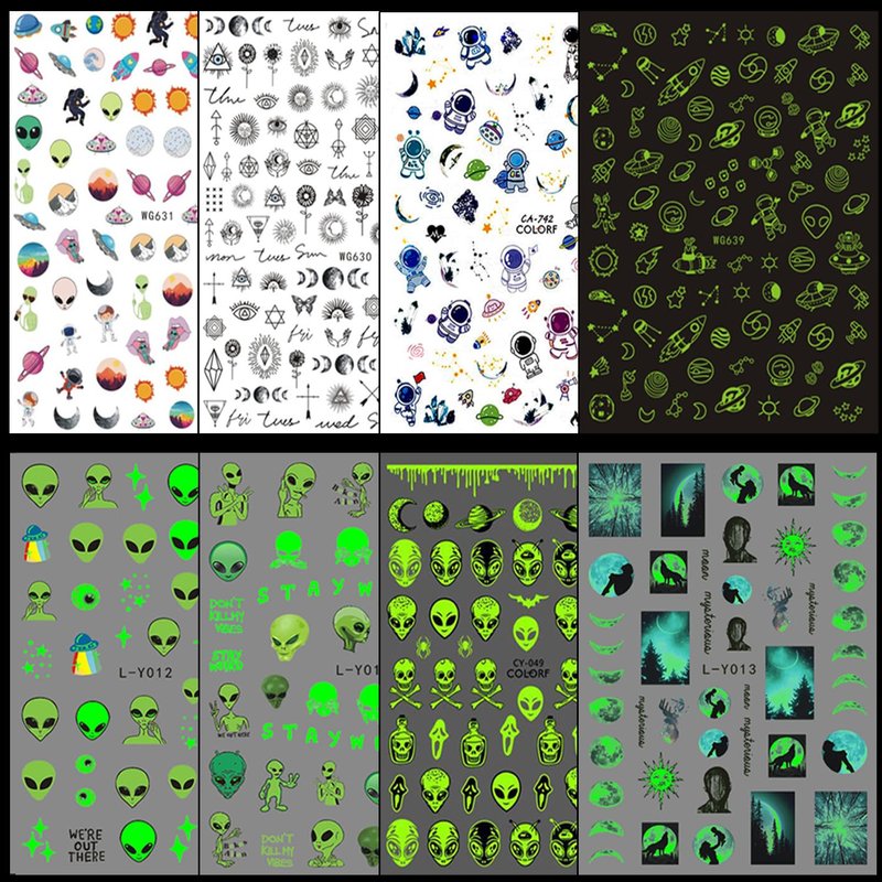 - 【Various Sizes】Fashion glow in the dark nail design, you can decorate nail glitter, nail water transfer decals, nail foils, etc. Nail sticker pattern come in many sizes, you can decorate your nails or resin nails. You can easily find the right size for creation.