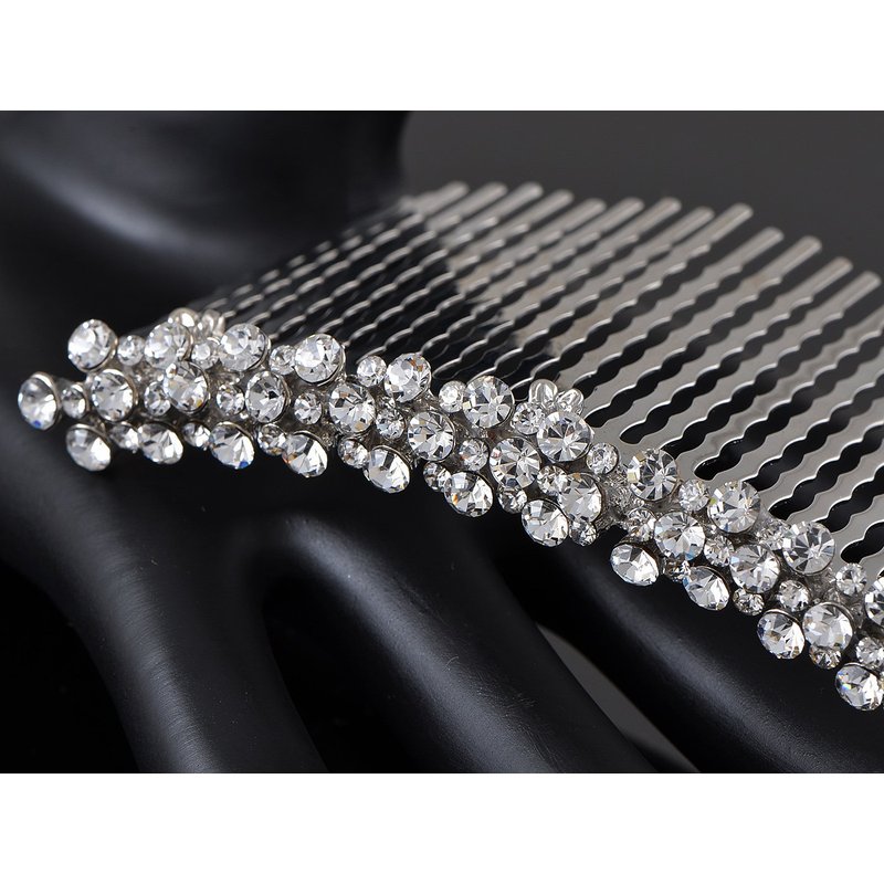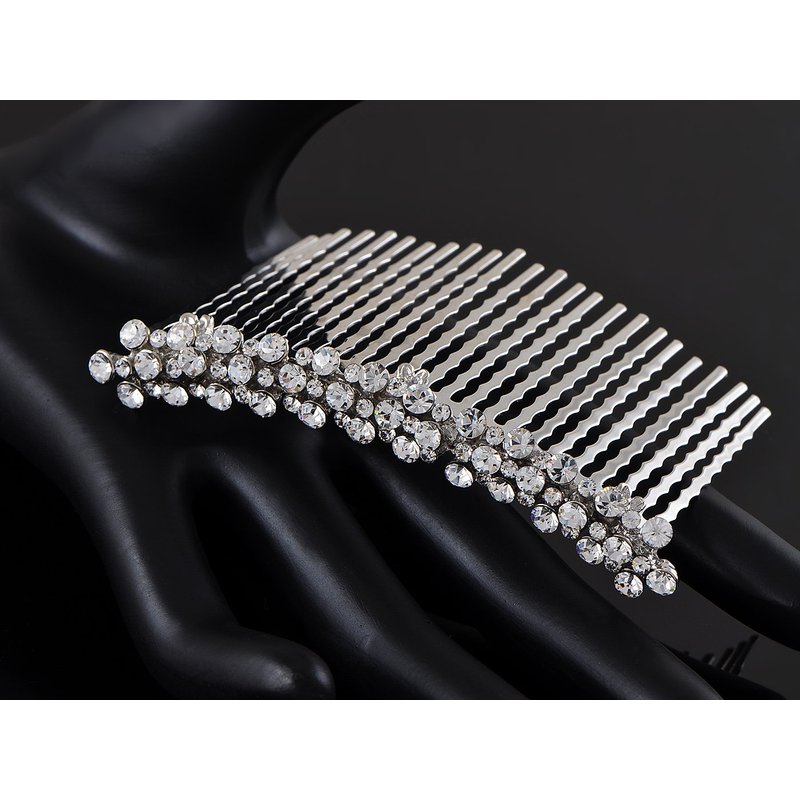 - High quality handicraft. This bridal hair comb was hand crafted to assure the highest quality possible. The whole body was made with silvery tone alloy metal, and clear crystal rhinestone are dotted to shine with radiance