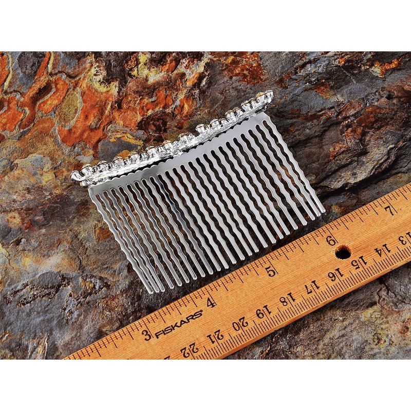 Silvery tone metal alloy with clear crystal rhinestones create this hair comb. Perfect for weddings, formal occasions, or added sparkle to your everyday outfit.
