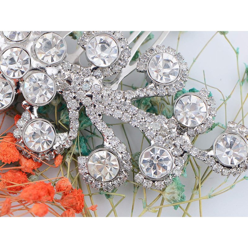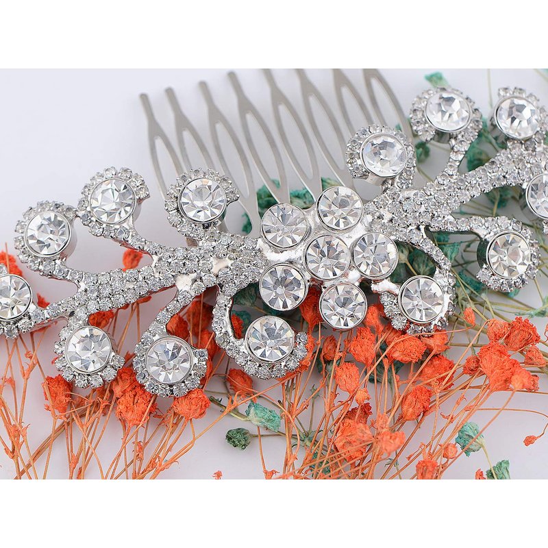 - Lovely design - a stunning silvery tone hair comb. The hair comb is featuring a daisy flower design with sparkly clear crystal rhinestones