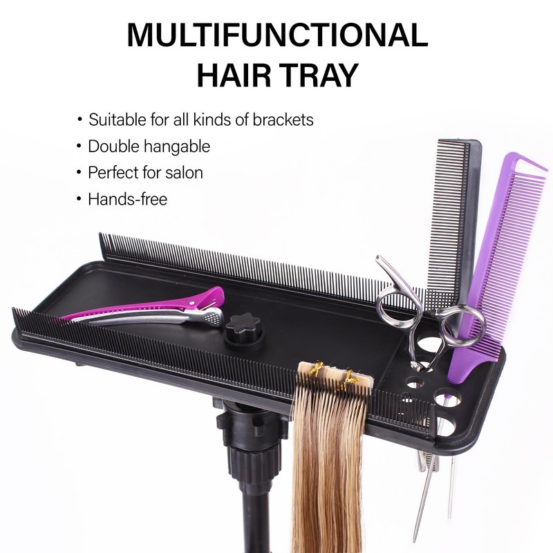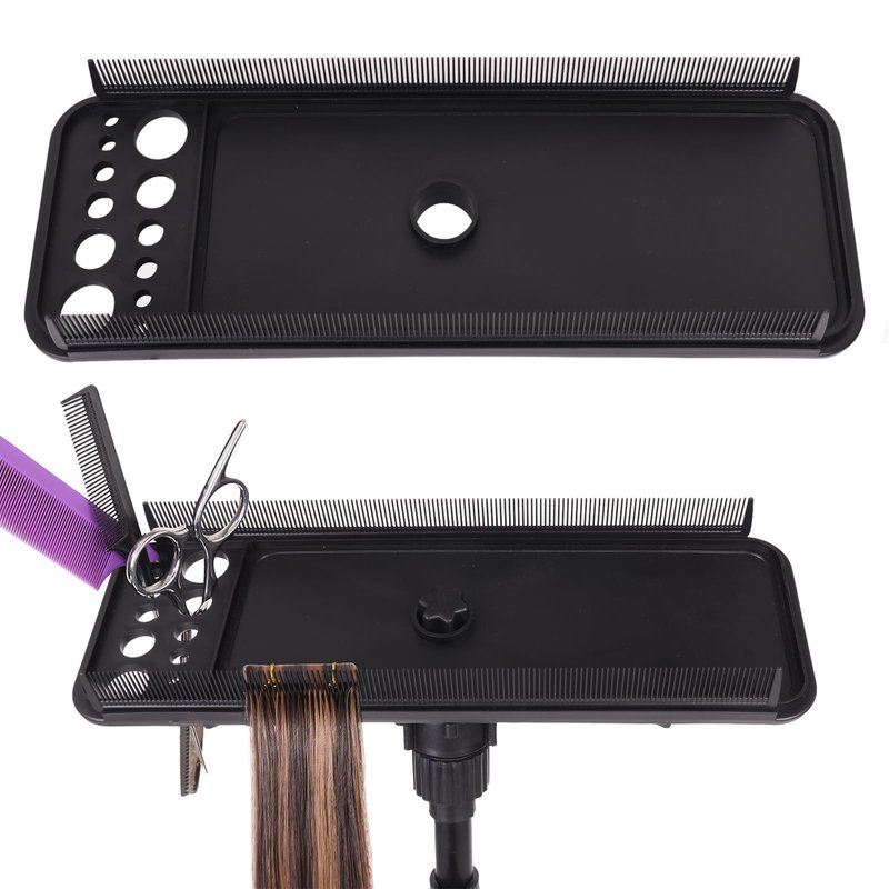 - Tripod tray surface has 12 holes of different sizes.Suitable for placing various hair styling tools. For example, hair scissors, curling sticks, pointed combs, crochets, roller combs, clips, etc.