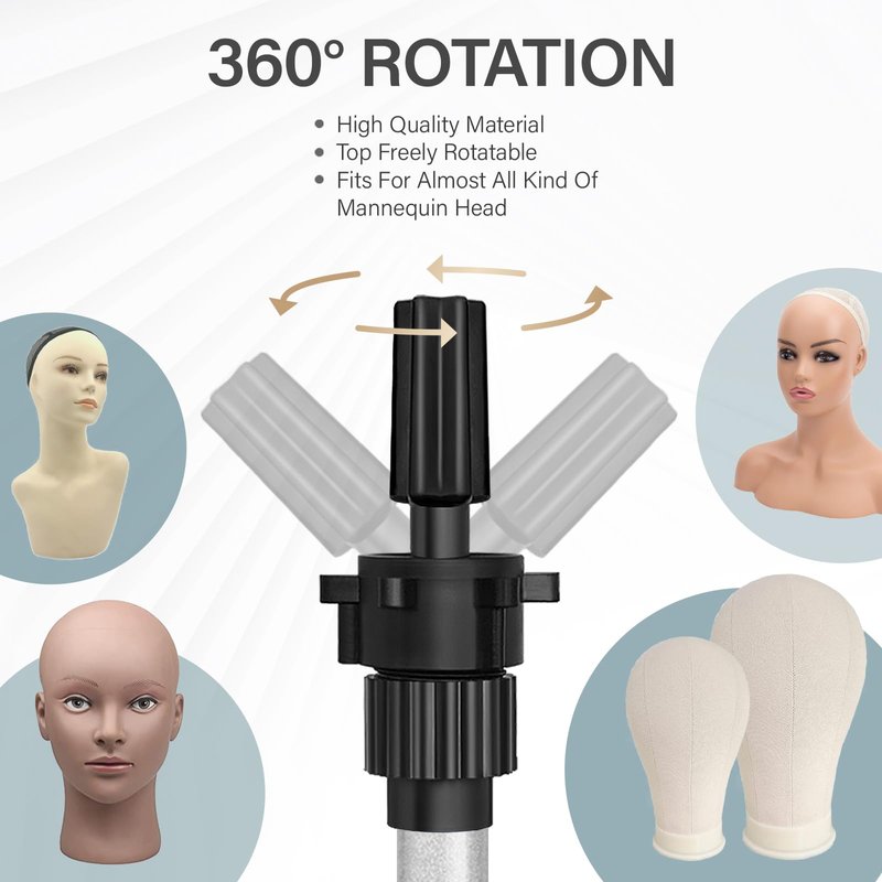 - The wig tripod has 360°rotatable head and adjustable height.You Can Tilt The Wig in Different Directions.Fit for most training heads, canvas block head, mannequin head, hairdressing training head, doll head, and foam head.