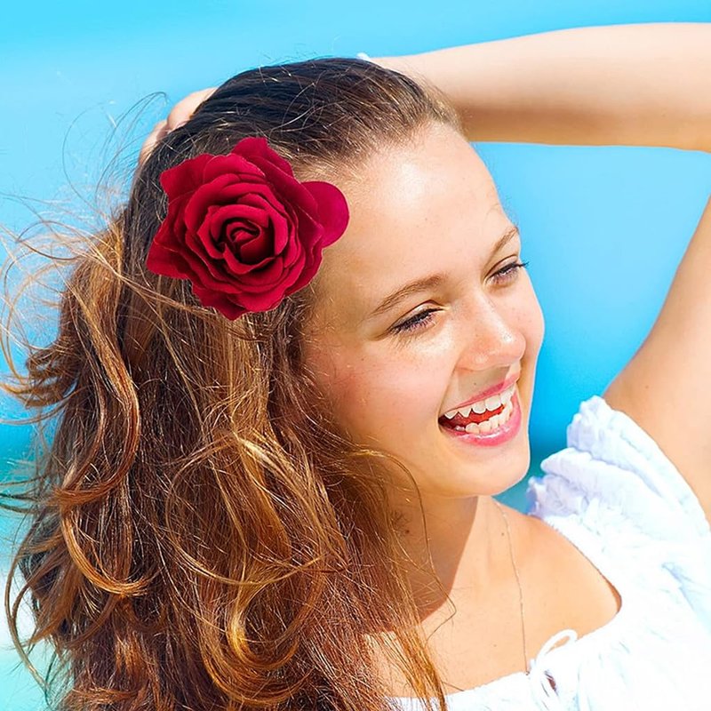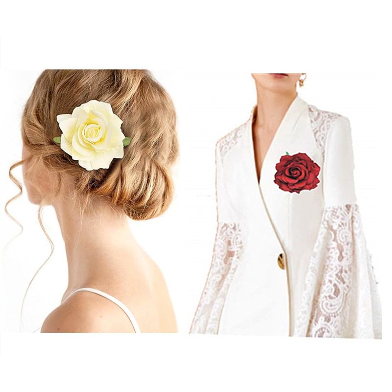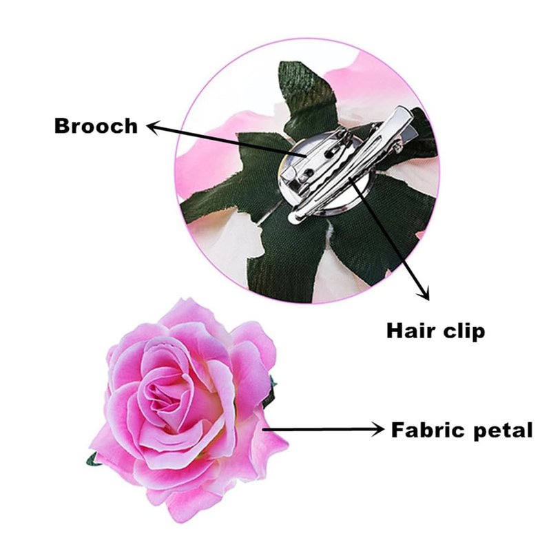 ALIMITOPIA Flower Hair Clip,Fabric Artificial Rose Flower Hairpin Barrette Brooch Headdress Bobby Pins Headwear Hair Accessories for wedding Party supplies(Rose Style,4.3 inches,6pcs)