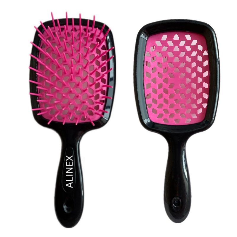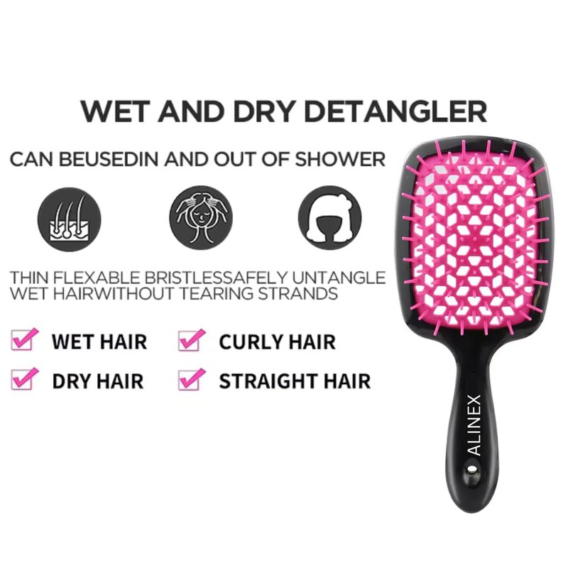 ALINEX Wet & Dry Vented Detangling Hair Brush - Hair brush for All type of Hairs with Black Pink Constrast -Hair Brush Man and Woman,Ultra-soft Tangles Hair Brush