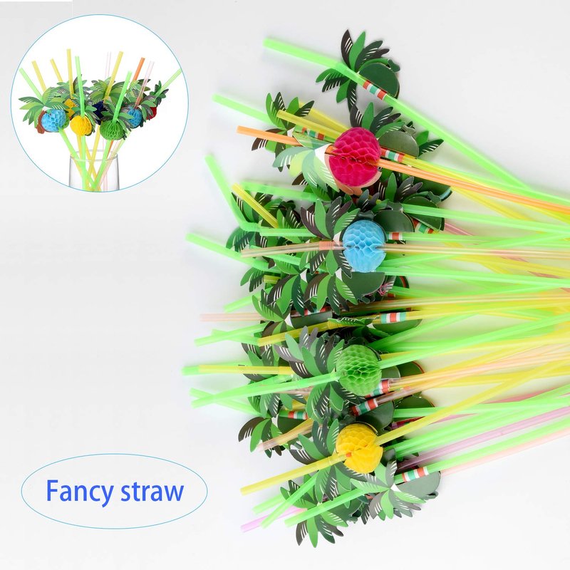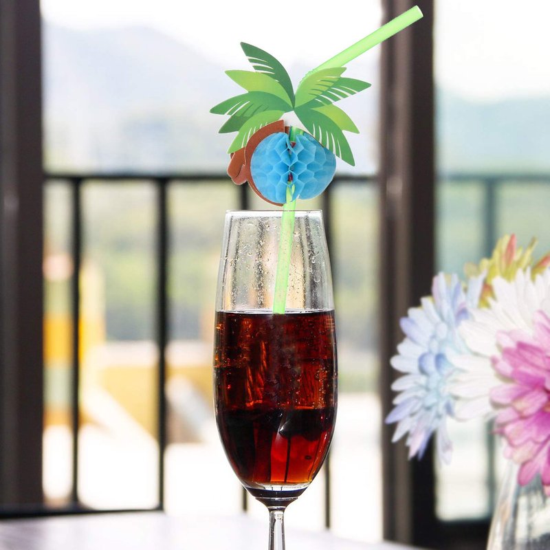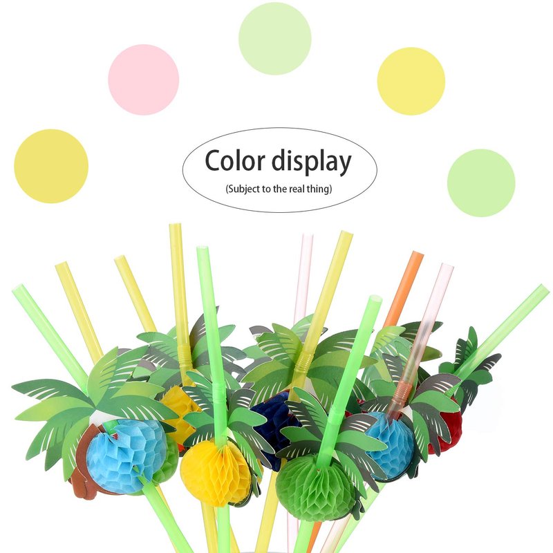 ALINK 50 Coconut Tree Drinking Straws, Hawaiian Beach Cocktail Luau Party Decorations Supplies