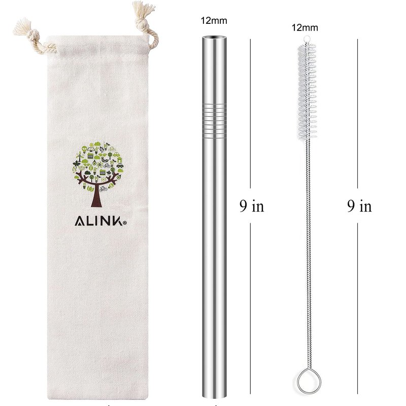 ALINK Reusable Stainless Steel Boba Straws with Case and Cleaning Brush, 4-Pack Extra Wide Metal Bubble Tea Straws for Smoothie , Tapioca Pearl, 12 mm x 9 inch