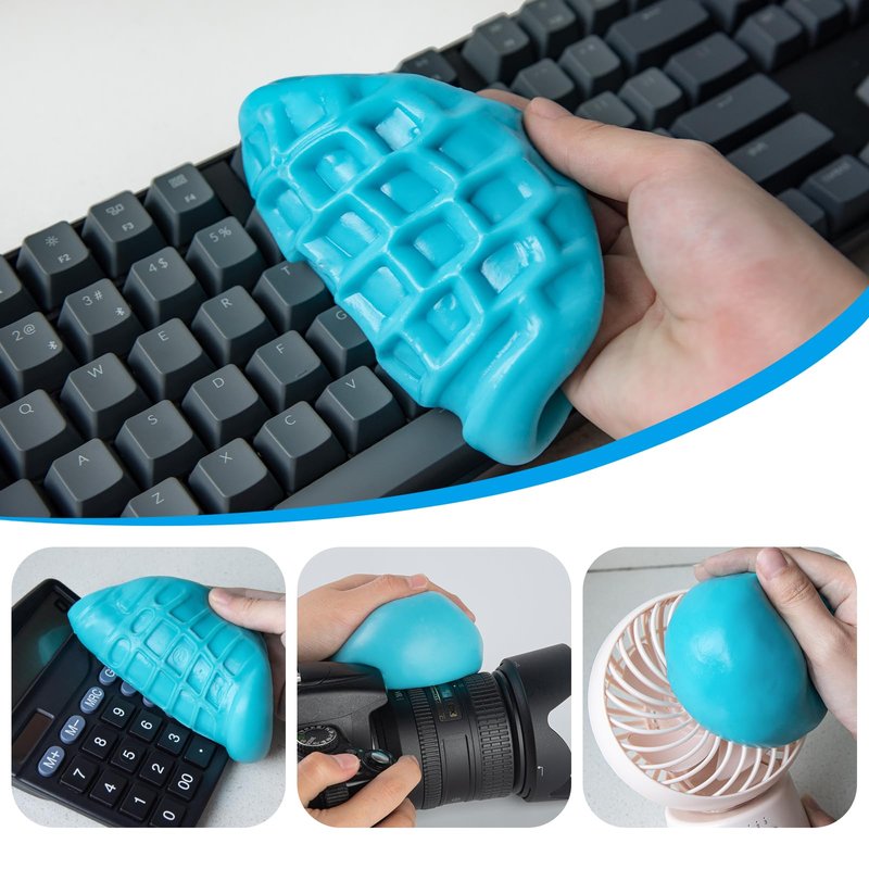 - Easy to use: keep your palms dry before use, take the keyboard cleaning gel, knead it into a ball, slowly press the detailing putty into the keyboard, car vents and other uneven surfaces, gently roll or press for about 3-5 seconds Then slowly pull it up and the dust will be taken away with the cleaning putty.