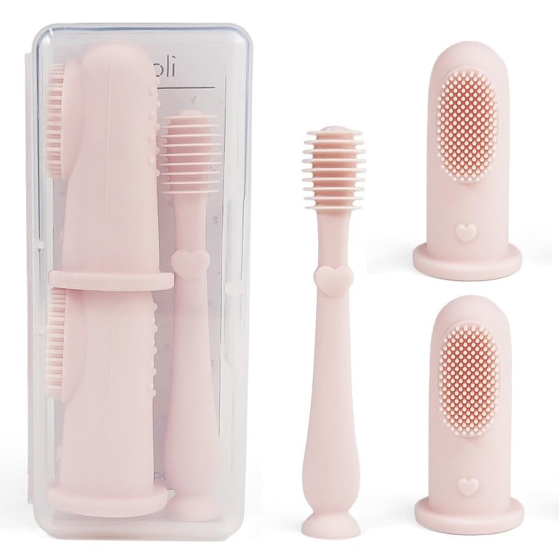 Ali+Oli Oral Care Set for Baby (Blush) Includes Dual-Sided Baby Finger Toothbrush x 2, Tongue Scraper for Baby, Protective Case, BPA, Phthalate, and PVC Free, Food-Grade Baby Care Products for Infants