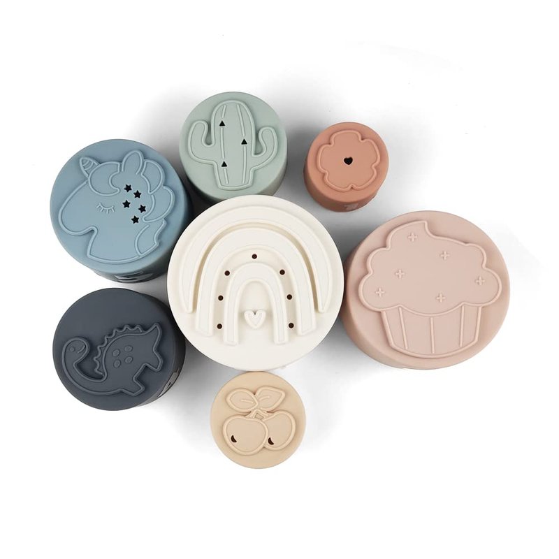 - BABY-FRIENDLY: We designed our silicone stacking cups with babies, toddlers, and kids in mind. Each follows tight quality controls using 100% Food-Grade platinum silicone that is free of BPA, Phthalates, Lead, Cadmium, and PVC, making them suitable for play. These toys are dishwasher safe, making cleanup a breeze.