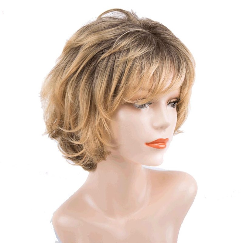 Alipher Realistic Women Wigs Portable Short Curly Wig Synthetic Yellow Wigs For Women Costume Cosplay Party Supplies 1PCS